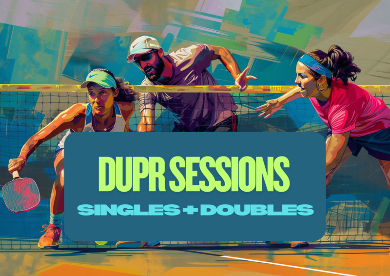 Want to test yourself against new players and see where you stand? Our DUPR Single + Doubles Session is the perfect way to get a rating without the long-term commitment. Play competitive games in a structured environment, have your results uploaded straight to DUPR, and walk away with an official rating you can build on.